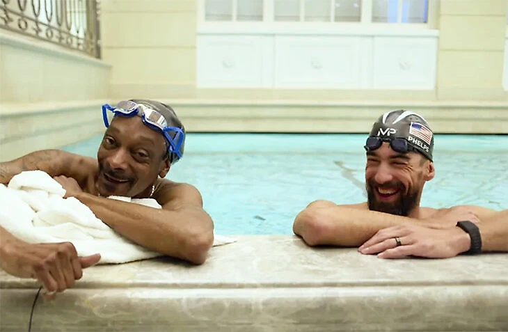 С самым титулованным олимпийцем в истории Снуп тоже пообщался. Более того, Майкл Фелпс учил его плавать. Вот это уровень!