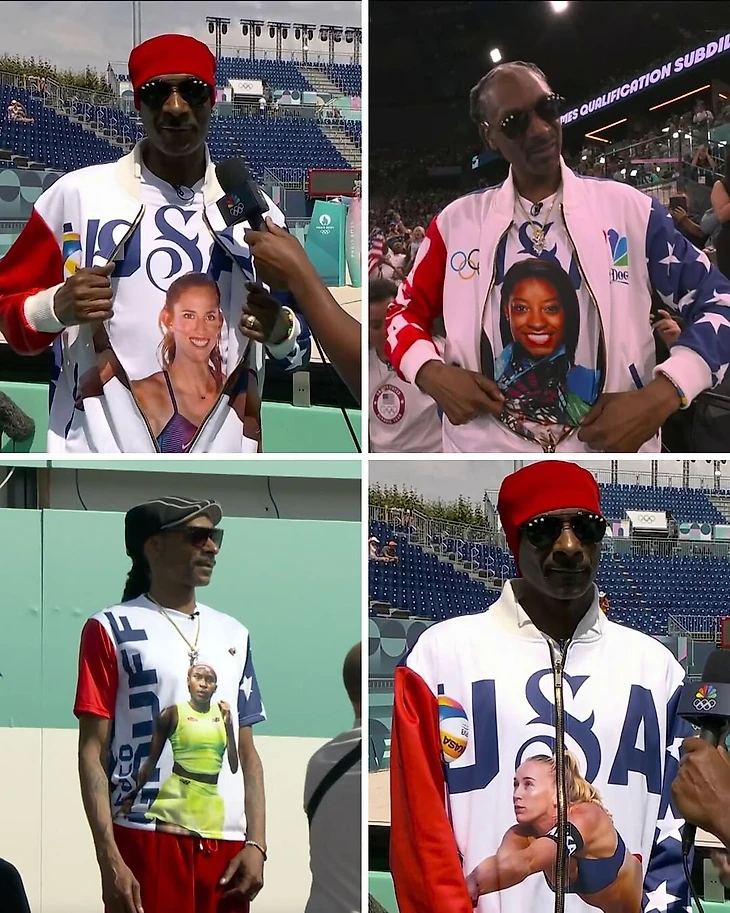 Почти в каждой топ-трансляции не обходится без кадра со Снупом. Он ходит на все главные старты Олимпиады. При этом рэпер не просто так оказался в Париже – вообще-то он на работе. Снуп Догг – специальный корреспондент американского NBC: не только посещает трибуны, но и снимает ролики для канала.