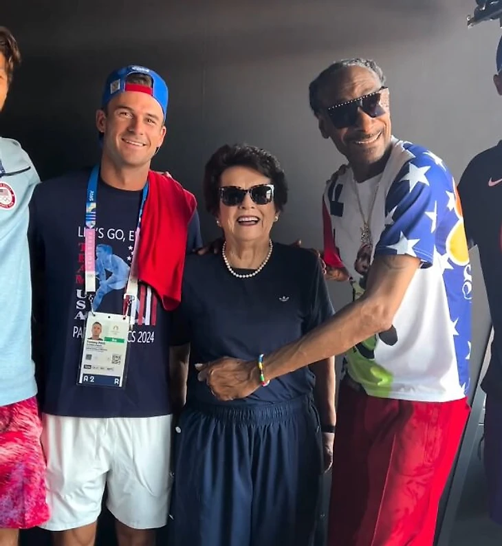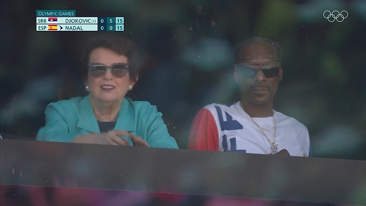 Похоже, главная бро подруга Снупа на этих играх – легенда тенниса Билли Джин Кинг. Они вместе смотрели матч Рафаэль Надаль – Новак Джокович.