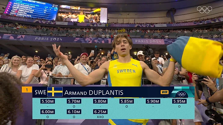 Арман Дюплантис не просто это сделал, а выдал идеальную драматургию: ни одной ошибки по пути, включая 6,10 с большим запасом, две неудачные попытки на 6,25 – и такая долгожданная третья.