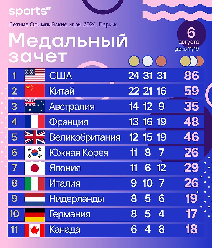 🥇 Нидерланды 🥈 Великобритания 🥉 Австралия