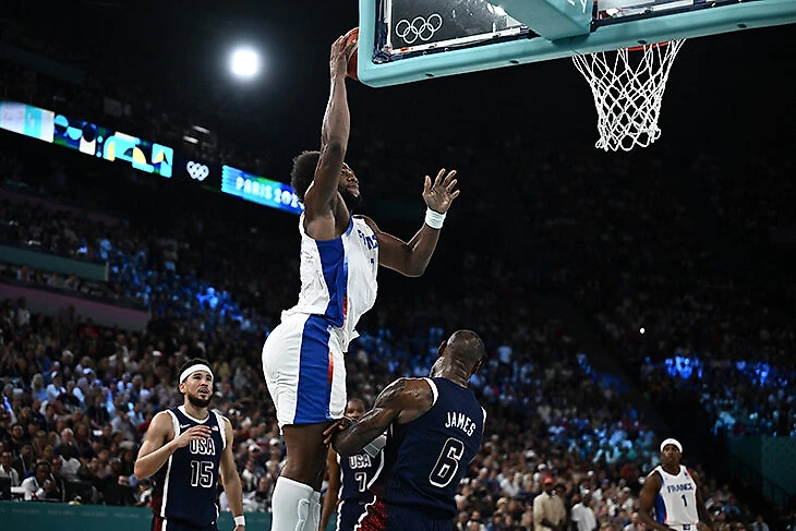 Францию держат в погоне Виктор Вембаньяма (13 очков) и Гершон Ябуселе (15). Ябуселе во второй четверти вообще вколотил постер через Леброна.