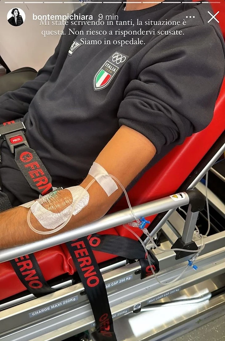 Жена Джанмарко опубликовала такую сториз: прыгун в высоту получает мединскую помощь.