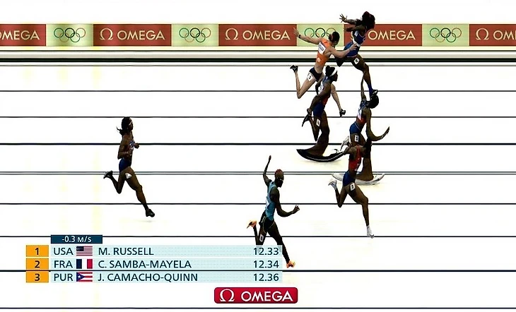 📷 Фотофиниш и одна сотая решили золото на 100 метрах с барьерами у женщин: американка Масаи Расселл первая, француженка Сирена Самба-Майела вторая. Отставание третьего места, Джасмин Камачо-Куинн из Пуэрто-Рико, три сотых от золота и две – от серебра
