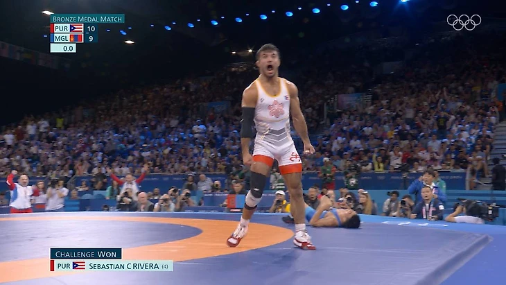 Боль монгола, счастье Пуэрто-Рико: Себастьян Ривера, знаменосец, принес стране вторую медаль за два дня и всего. После вчерашней бронзы Жасмин Камачо-Куинн в забеге на 100 метров с барьерами
