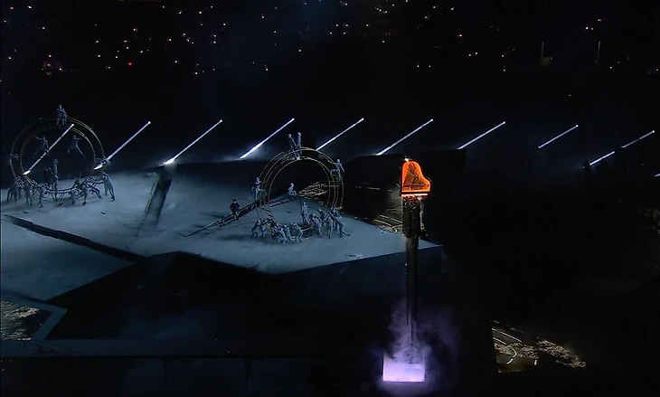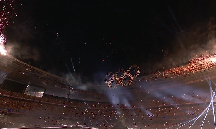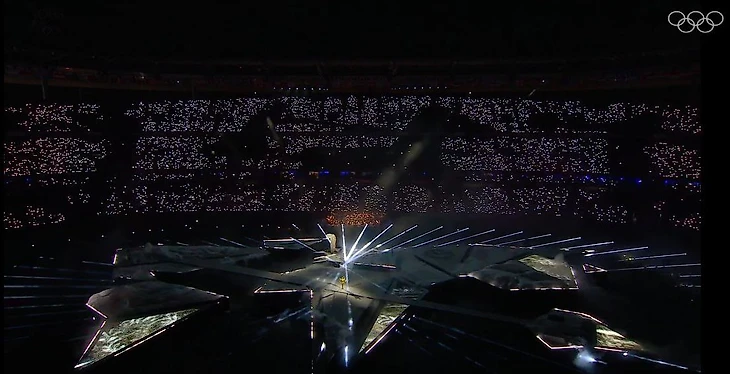 А по трибунам «Стад де Франс» – классические фигуры олимпийцев. Иллюминация через браслеты у всех зрителей