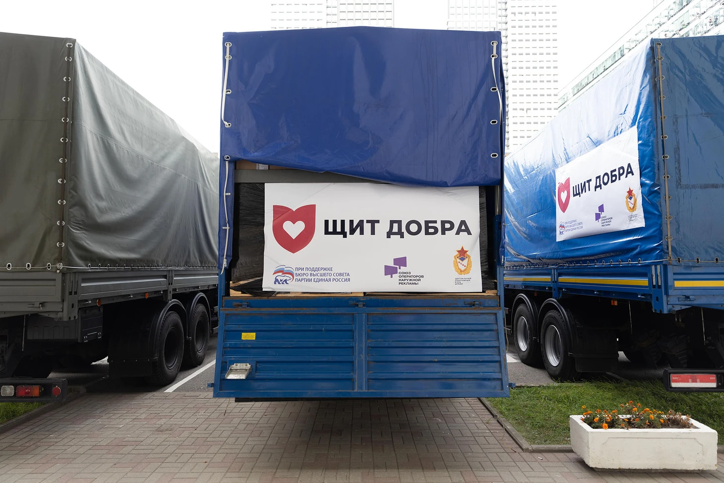 Церемония отправки гуманитарного груза в рамках масштабной акции «Щит Добра» состоялась на территории манежа ЦСКА 10 сентября. Это уже 27-я колонна, в которую вошли: медицинские препараты, оборудование и принадлежности, продукты питания, кровати, матрасы, одежда, обувь и многое другое. Начиная с первого рейса совокупный объем гуманитарных грузов превысил 1000 тонн и теперь составляет 1030 тонн.