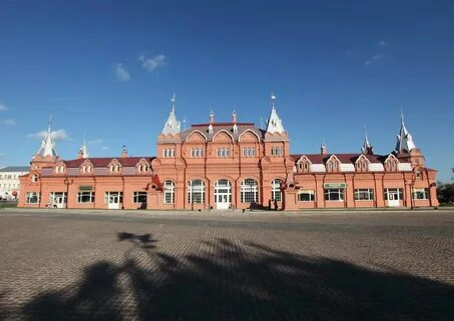 Красногорская площадь существует почти с момента основания города. В древности здесь стояли торговые лавки и прилавки, вовсю кипела торговля. В наши дни основная масса людей не покупатели, а туристы и отдыхающие. О былом назначении площади говорят прекрасно сохранившиеся Торговые ряды. Они выстроены в русском стиле и визуально напоминают Государственный исторический музей на Красной площади в Москве. Внутри Торговых рядов работает несколько магазинов и кафе, поэтому вы можете что-нибудь купить, а потом перекусить перед отправкой к другим достопримечательностям города.