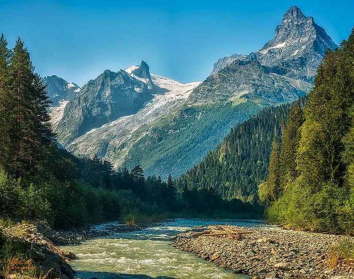 Домбайский поселок, утопающий в зелени Домбайской поляны на высоте 1650 метров, по праву считается одним из самых привлекательных курортов Северного Кавказа. С трех сторон он окружен величественными ущельями Аманауз-Алибека и Домбая-Ульгена, создавая неповторимую атмосферу уединенности и близости к природе.