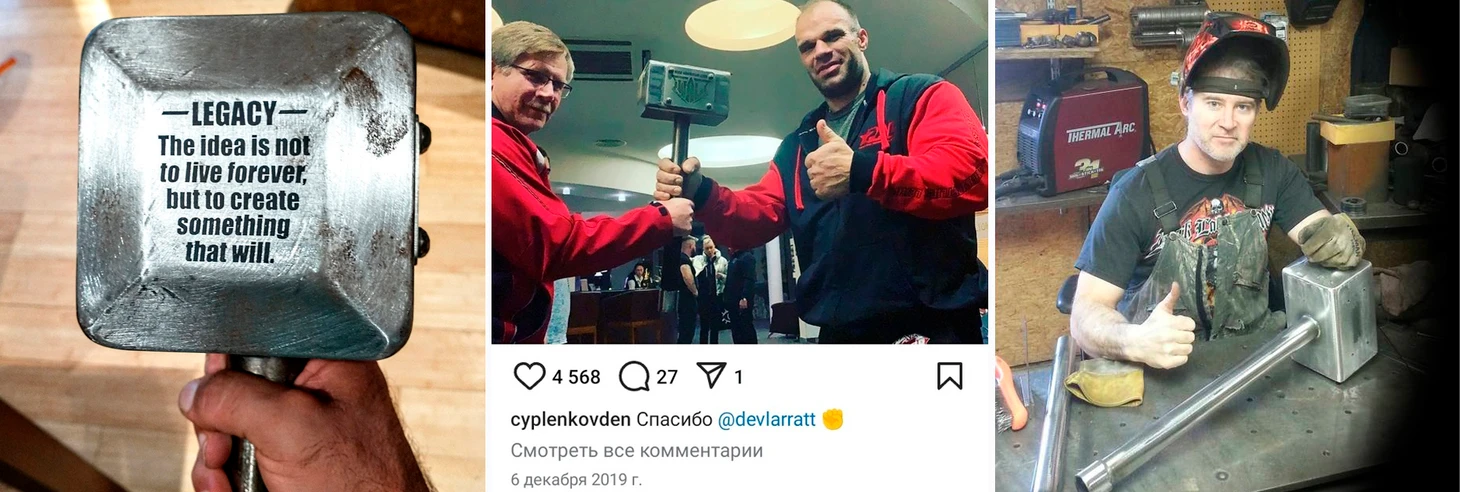 Молот Наследия, который Девон передал Денису в 2019 и теперь так хочет вернуть назад - это главный трофей, которым в свое время награждали победители всех весовых категорий лиги WAL. Это цельнометаллический молот весом около 9 килограммов. разработал и изготовил молот Райн Питтс, владелец собственного бизнеса по производству оборудования, предназначенного для улучшения хвата и силы.