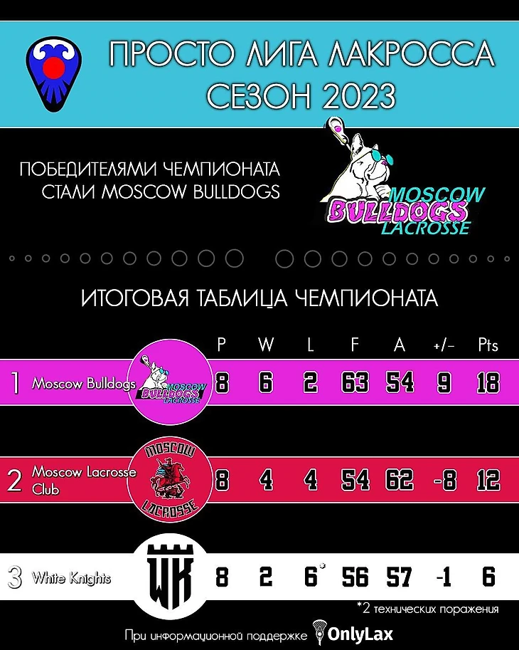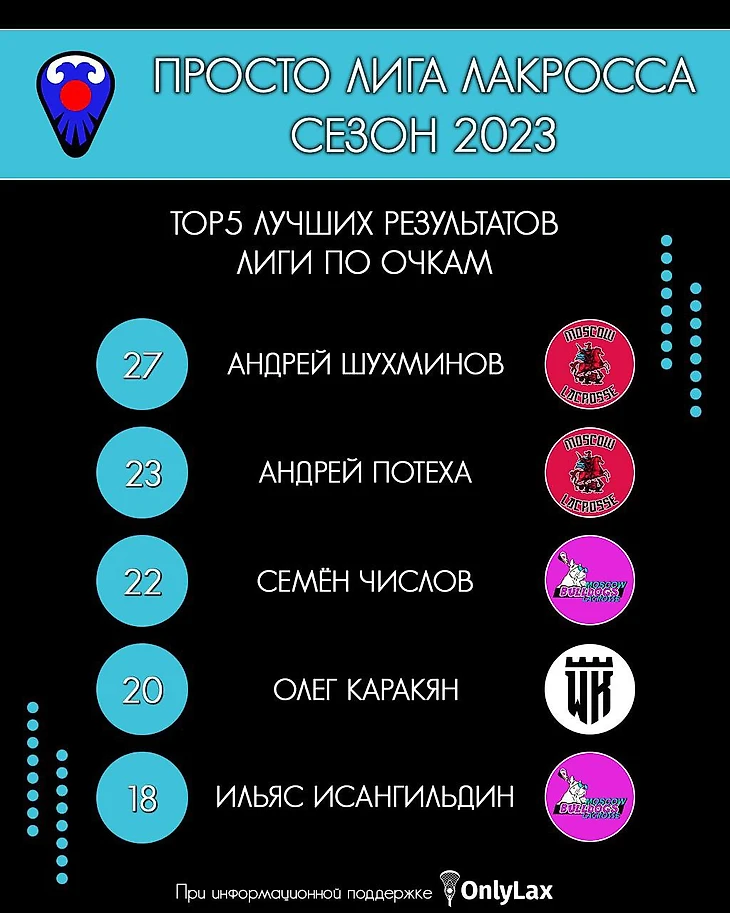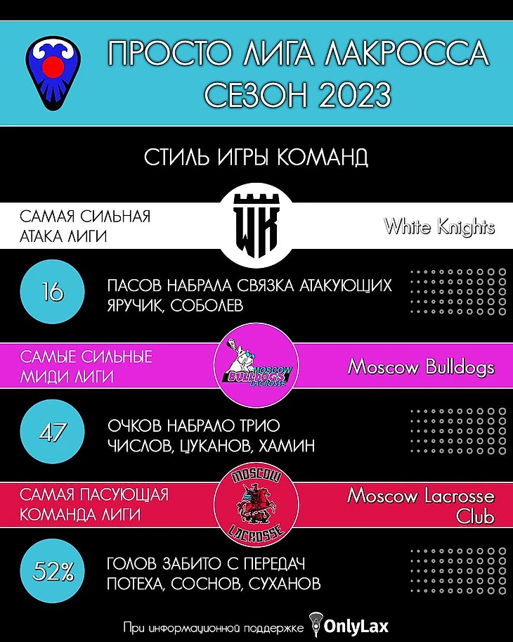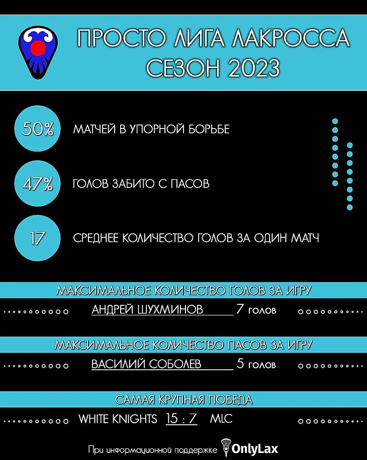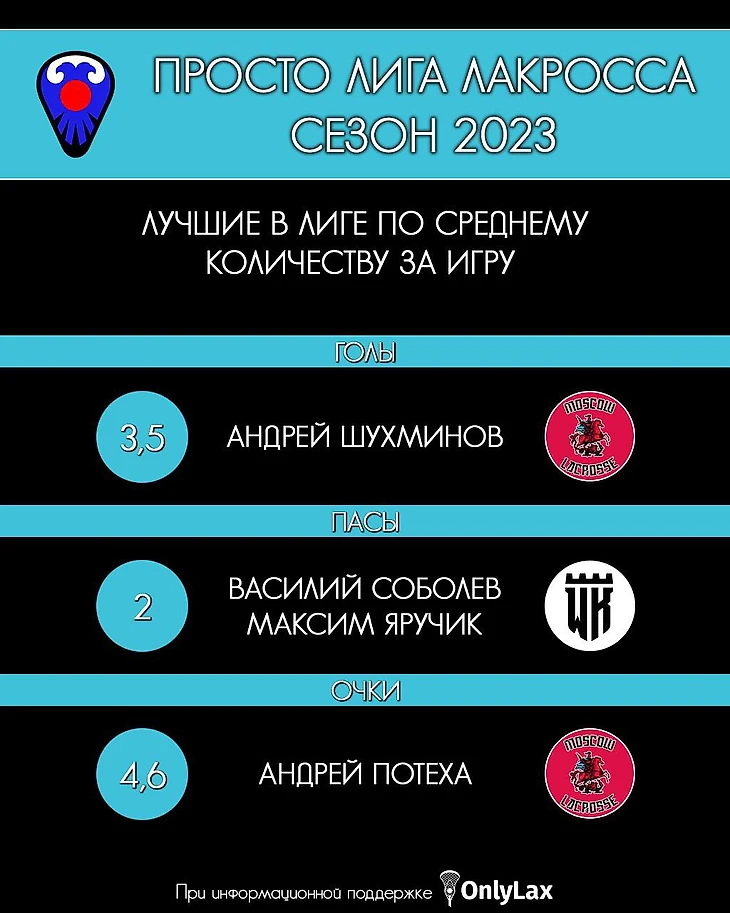 Пока команды готовятся к решающему матчу сезона 2024 среди мужских команд, один из игроков Moscow Lacrosse Club Андрей Потеха подготовил для канала @onlylax в телеграме расширенную статистику сезона 2023, в котором участвовали 3 команды.