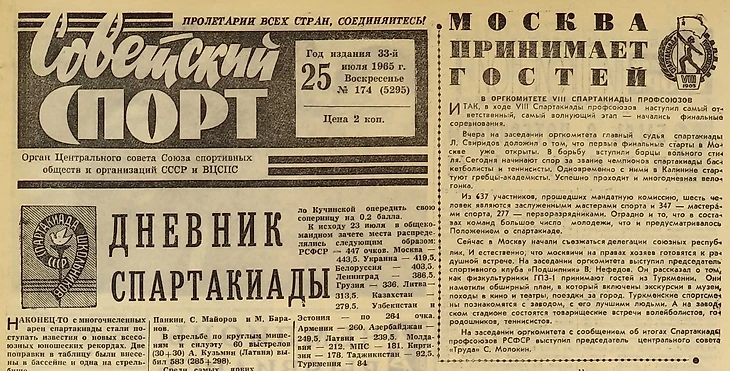 Советский спорт, выпуск от 03.07.1980 Олимпийская азбука (фрагмент)