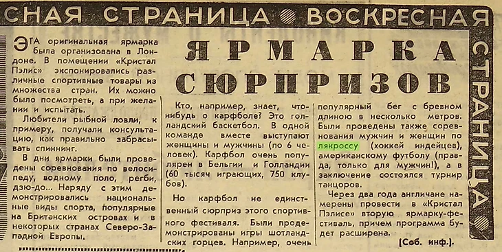 Советские находки. Лакросс в газетах
