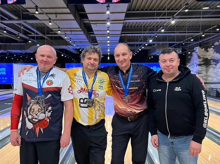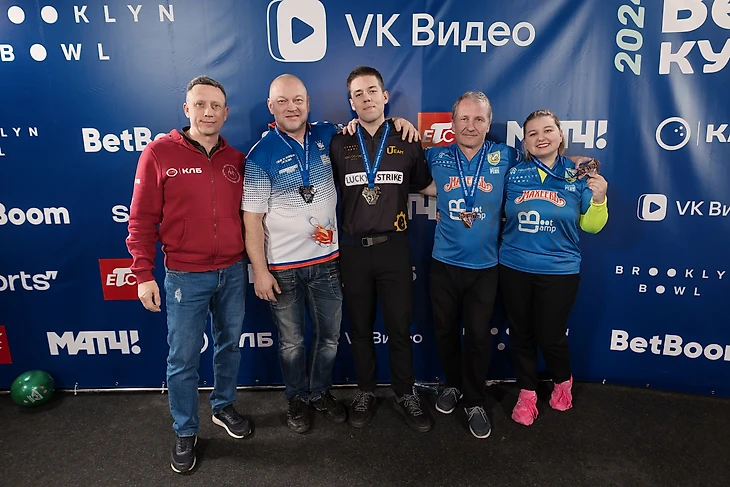 Слева направо: Вадим Коряков (президент Федерации боулинга Тюменской области), Юрий Сазонов, Максим Ландау, Евгений Кузнецов, Мария Кошель