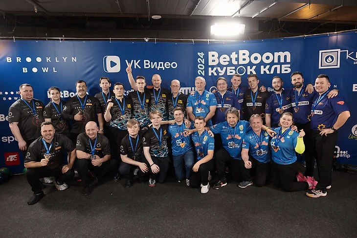 Команды слева направо: Brooklyn Bowl Black (в черном), Б-69 (в черно-синем), Индеаль-1 (в синем), Ultimate Team (в фиолетовом)