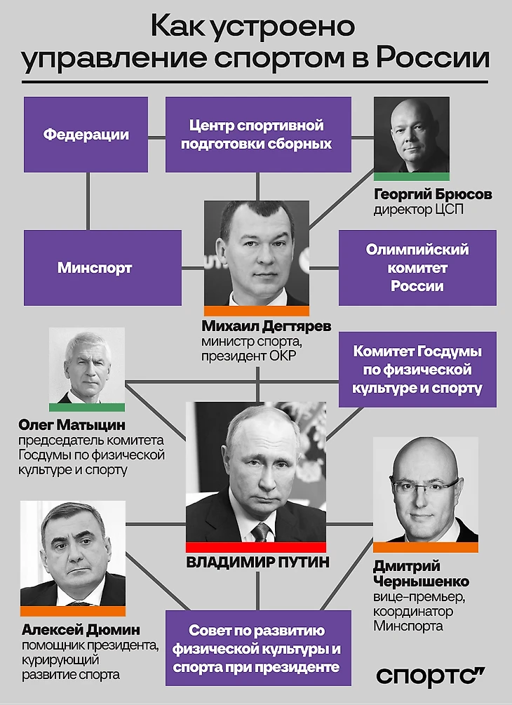 Кто реально управляет нашим спортом? От помощника Путина до Дегтярева и федераций