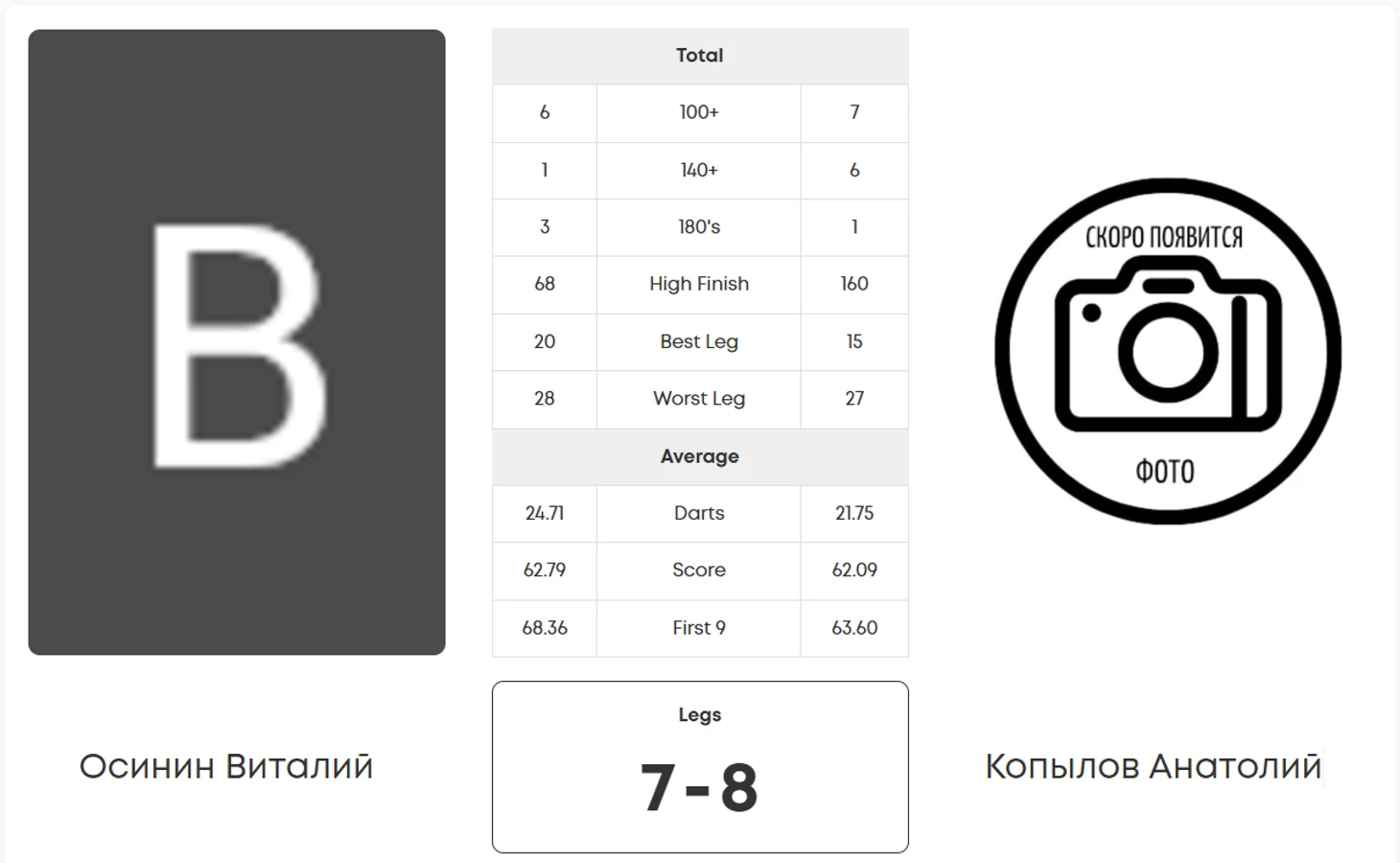 «Анатолий может продемонстрировать игру с набором выше 60 - справится ли с этим Виталий? Оба дартсмена идут без поражений, но особо сложных матчей у них ещё не было. Ожидается больше 30 подходов за 100+».