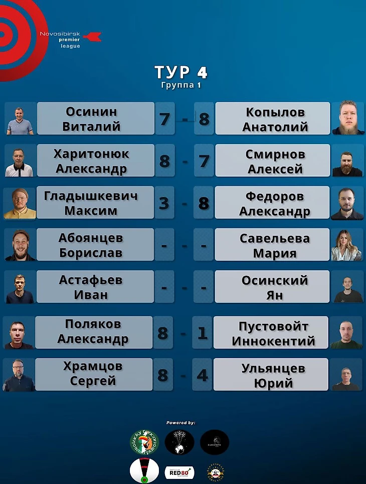 Результаты четвёртого тура Novosibirsk Darts Premier League