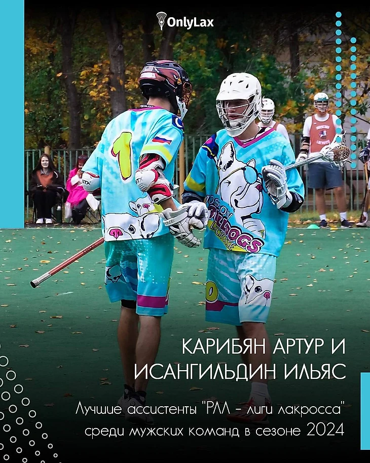 Лучшие ассистенты среди мужских команд. Ключевой показатель — голевые передачи. 1. Карибян Артур (Bulldogs) — 6 2. Исангильдин Ильяс (Bulldogs) — 6 3. Потеха Андрей (Moscow Lacrosse Club) — 3 4. Шухминов Андрей (Moscow Lacrosse Club) — 2 5. Авраменко Александр (Moscow Lacrosse Club) — 2 6. Жударев Владимир (Moscow Lacrosse Club) — 2 7. Гуров Константин (Moscow Lacrosse Club) — 2 8. Числов Семен (Bulldogs) — 2 9. Цепляев Алексей (White Knights) — 2 10. Яручик Максим (White Knights) — 2
