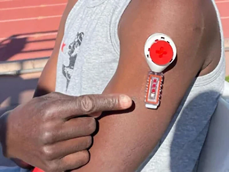 ● Как это выглядит? Допинг-офицер дезинфицирует спиртовой салфеткой предплечье (или другую часть тела) спортсмена, потом прикрепляет туда на пластыре специальный прибор.