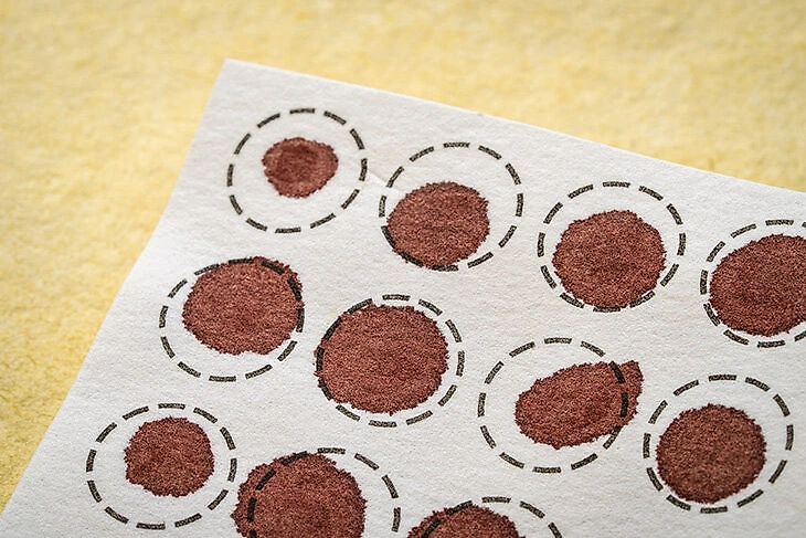Но главный плюс: пробы, взятые таким способом, проще транспортировать. Если стандартные пробирки с кровью требуют жесткого соблюдения температурного режима, то сухие пятна – нет. Они дольше хранятся и позволяют несколько раз проводить перепроверку.