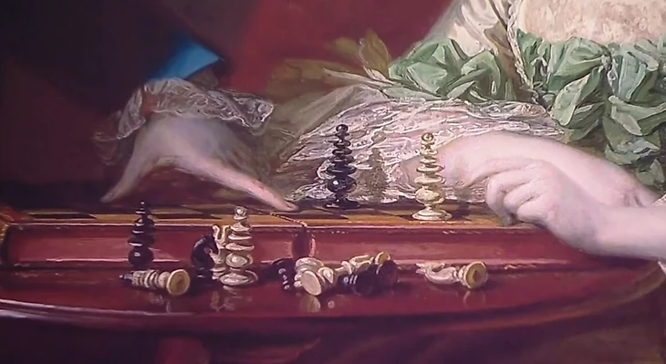 «Перед вами картина 1769 года английского художника Фрэнсиса Котса. На ней вы видите Уильяма Уэлби и его супругу Пенелопу. То, что мы от вас скрыли, натолкнуло искусствоведов на мысль, что это отражает смелую для того времени идею равенства. И даже обещает супругам вечный союз. Что же произошло?»