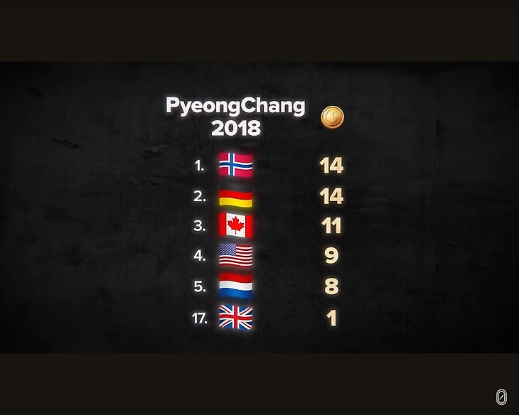 В 2018 году Норвегия заняла первое место в медальном зачете Олимпиады, имея всего лишь десятую часть бюджета Великобритании.