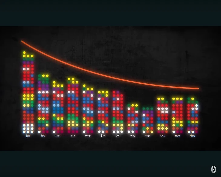 Это все игроки испанского чемпионата, сгруппированные по месяцу рождения. Как вы видите, игроков, родившихся в первой половине года, значительно больше.