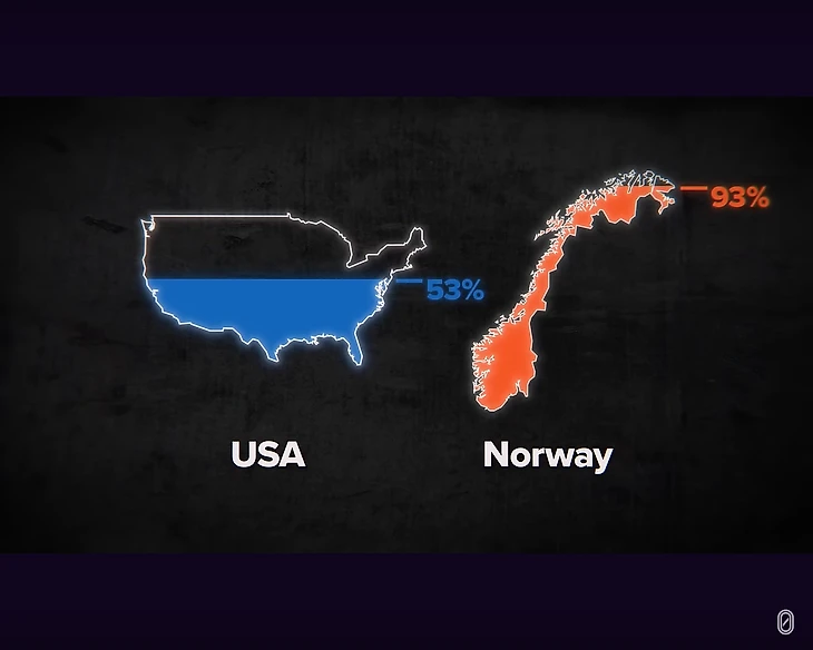 Так если деньги — не ответ: что же делает Норвегию такой успешной? Это парадокс. Норвегия — очень богатая страна, но они верят в социалистический способ ведения дел.