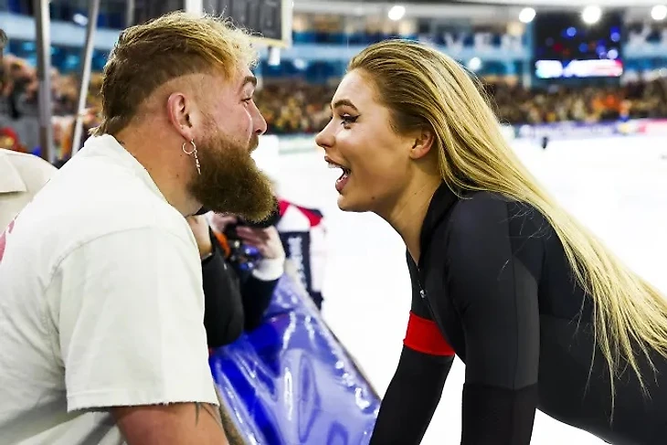 Ютта Лердам выиграла чемпионат Нидерландов по конькобежному спорту на глазах у Джейка Пола❤️🔥И жарко отметила с ним победу на трибунах
