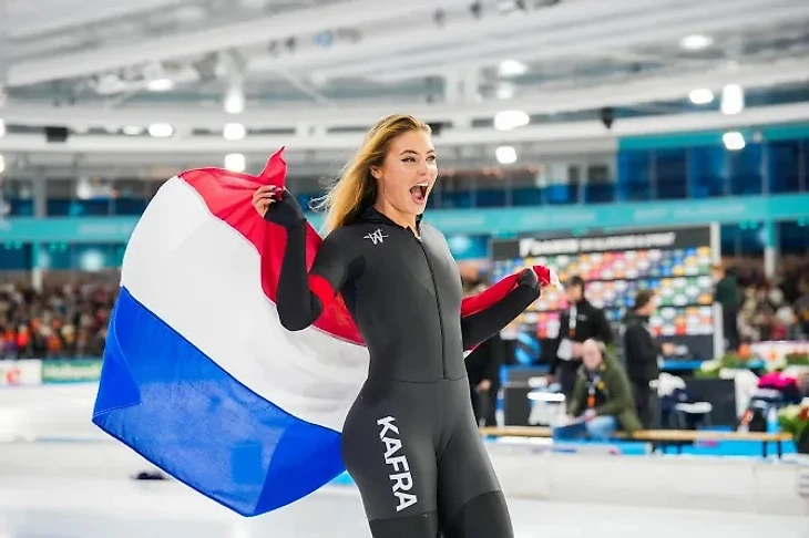 Прекрасная девушка Джейка Пола Ютта Лердам одержала победу на чемпионате Нидерландов по конькобежному спорту.