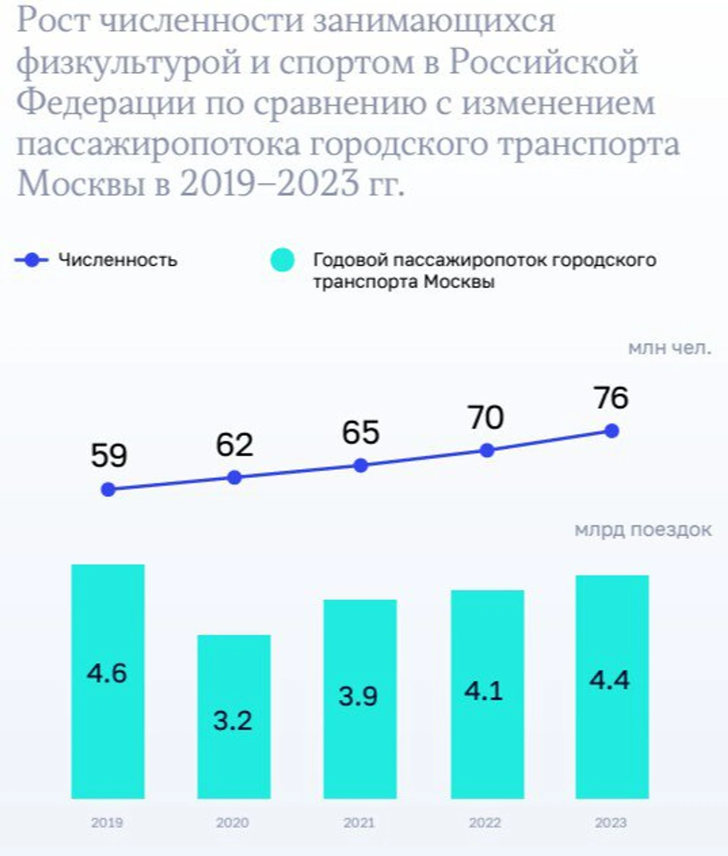 Эти сомнения Изотова иллюстрирует графиком, на котором сравнивается динамика численности занимающихся физкультурой и спортом с изменением пассажиропотока городского транспорта Москвы.