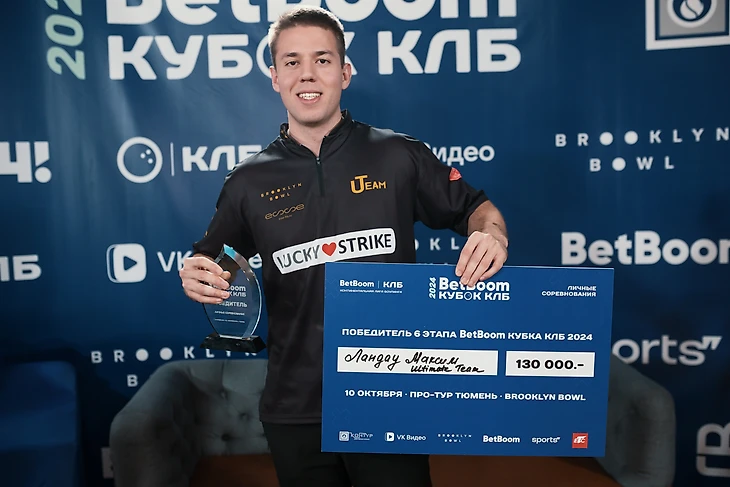 Максим Ландау — сильный и молодой боулер, максимально уверенно завоевавший титул победителя 5-го Про-тура BetBoom Кубка КЛБ 2024 в Тюмени;
