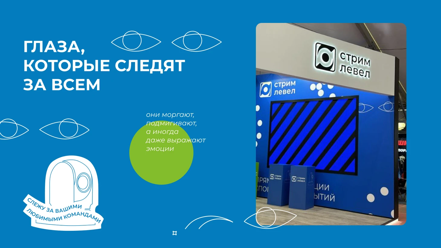 Мы подумали: а что, если сделать это частью нашего фирменного стиля? Ведь наша работа — это всегда быть в центре событий, следить за матчами, за игрой ваших любимых команд, за эмоциями на площадке. Так родилась идея создать фирменный элемент, который мы назвали «глазами».