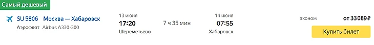 SU 5806/FV 5806 – 17:20, время в полете семь часов 35 минут, стоимость билетов от 33 089 рублей;