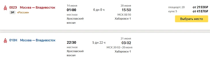 006Э «Владивосток – Хабаровск», фирменный «Океан»;