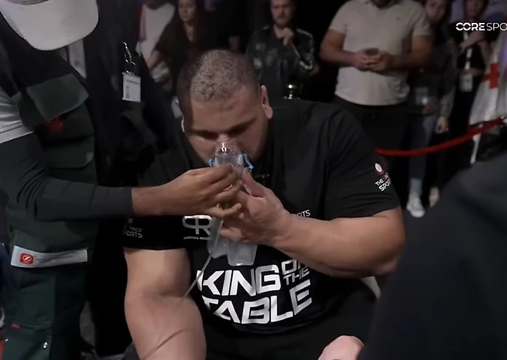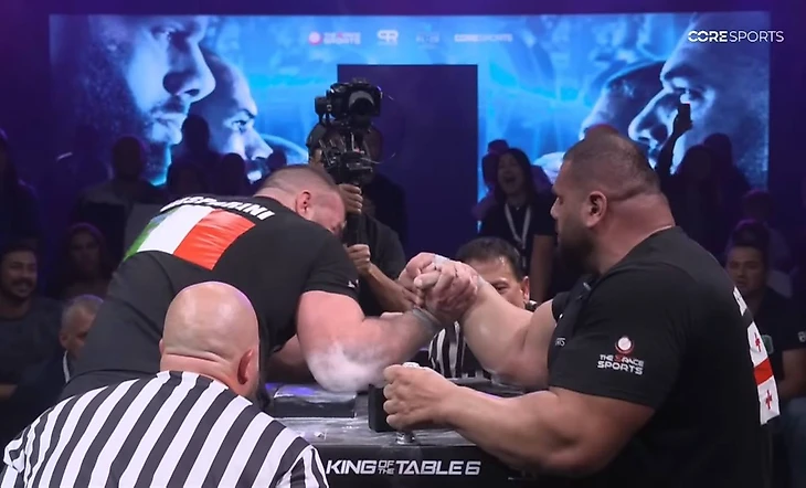 Суть в том, что Гаспарини уже почти начал выигрывать, но матч был закончен по решению грузинского атлета, которому уже не хватало, ни сил, ни кислорода. Кстати, с тех пор на профессиональной арм-арене запретили использовать кислородные маски!