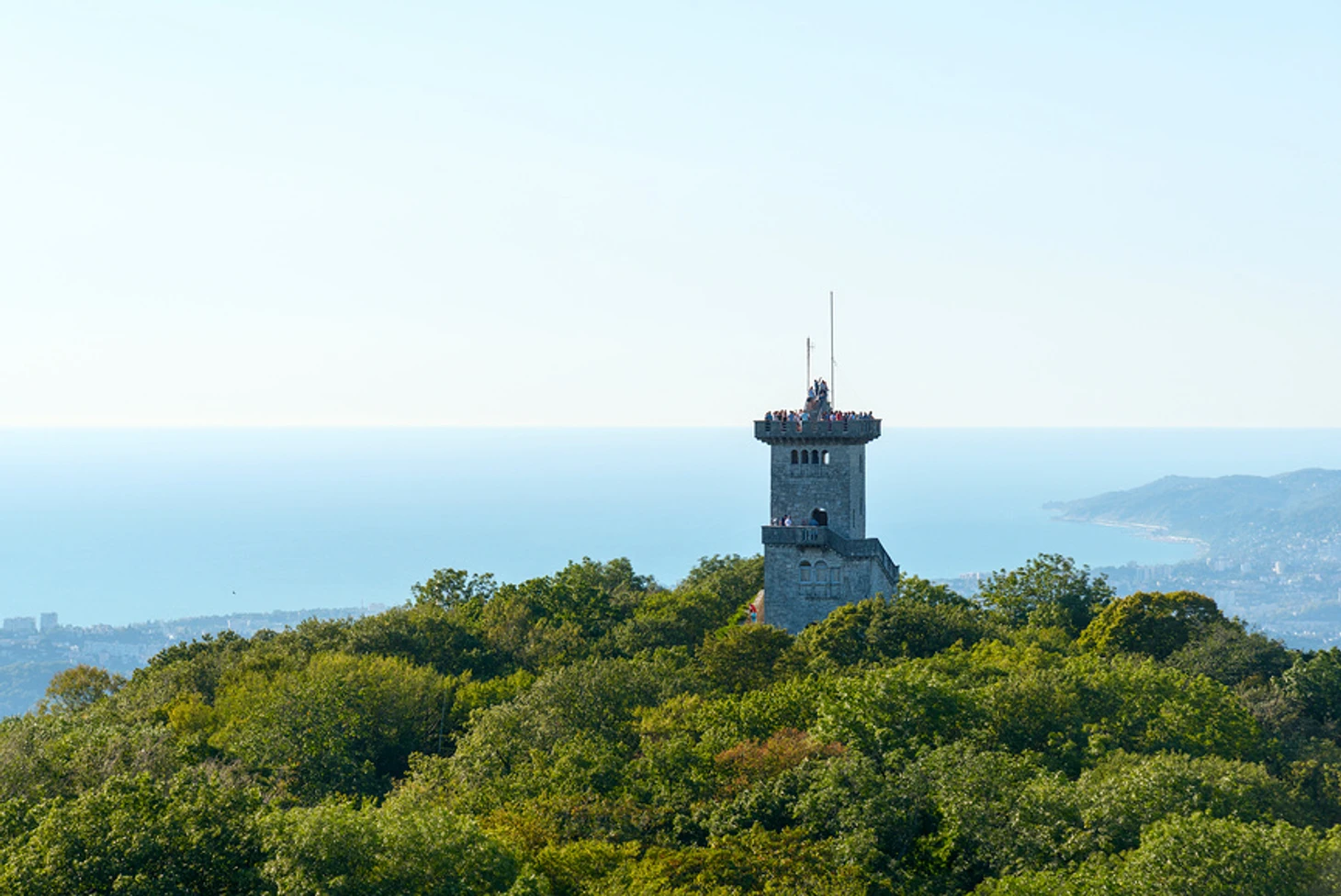 Высокая гора с шикарными видами на море, город и горы. Наверх ведет живописная дорога, а на вершине стоит башня, построенная еще при Сталине (сейчас на реконструкции). Даже без башни здесь есть что посмотреть – воздух чистейший, природа – топ.