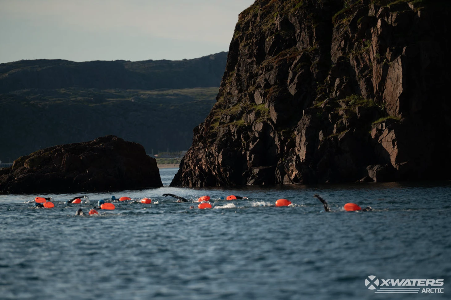 Пловцы X-WATERS трижды окунаются в воду перед тем, как переплыть Териберскую губу. Этот ритуал стал неотъемлемой частью нового образа Териберки и добавляет особую значимость каждому старту.