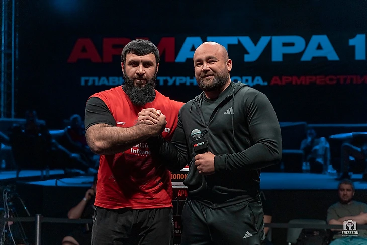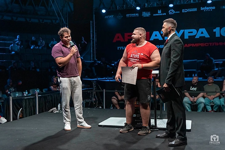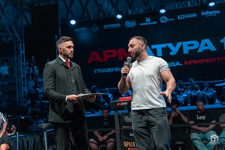 У серийного предпринимателя и основателя компании Wasabist Кирилла Мартынова на юбилейной АРМАТУРЕ тоже был свой профессиональный интерес. Связан он с его новым детищем — Лигой «РУКИ ТИТАНОВ», и на юбилейной АРМАТУРЕ он хотел присмотреть соперника для нового армфайта своего друга и тренера Вадима Алейникова.