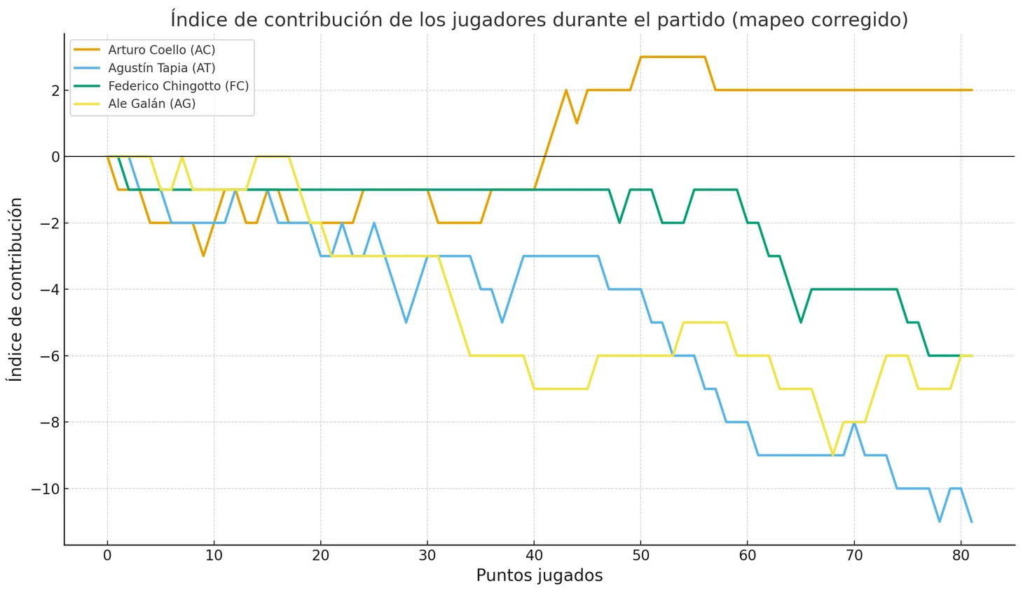 После такого болезненного поражения стоило ожидать, что претенденты сделают выводы. Так и случилось. В первом сете было заметно, как Галан и Чинготто максимально давили на Агустина Тапиа, вынуждая его ошибаться и выключая Артуро из игры. Ключевым моментом стал 10-й гейм, в котором второй паре мира удалось сделать брейк и перевести матч в напряжённый тай-брейк, который они выиграли, продолжая гнуть свою линию.