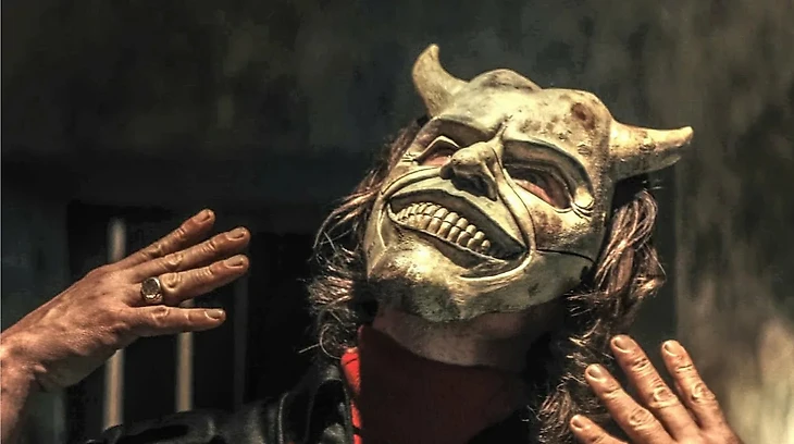 И вот ещё одно изменение. Если в обзоре на «Долгую прогулку» я разбирался, насколько удачно перенесли первоисточник и хорошо ли делать фильмы дословно по книге, то здесь я, к сожалению, книгу не читал. И главный вопрос этого обзора — «копирка ли это других фильмов?». Ведь если «Чёрный телефон» — это действительно уникальная работа, основанная на первоисточнике Джо Хилла с добавлением деталей из жизни режиссёра и сценариста, то второй фильм, «эмоции от которого до сих пор свежи», откровенно заимствует образы как минимум у двух давно избитых маньяков из других франшиз!