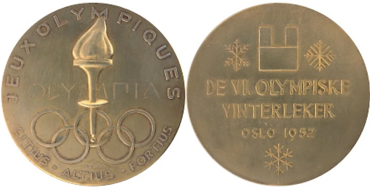 На оборотной стороне изображена пиктограмма городской ратуши Осло – прославленной столичной достопримечательности, открытой за два года до Игр.