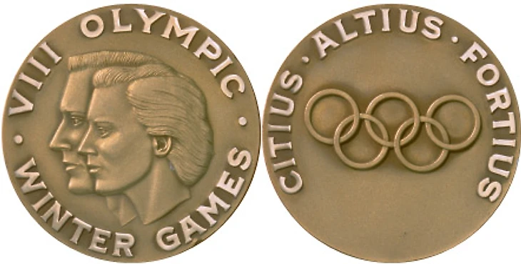Впервые медаль изготовлена из стекла ручной работы, обрамленного золотом. На медалях – олимпийские кольца на фоне гор, окружающих Альбервилль.