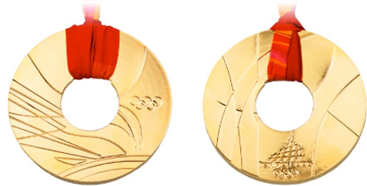 Первая медаль с отверстием в центре, олицетворяющая олимпийское кольцо и пиццу по-итальянски. По замыслу авторов, такой дизайн особенно красиво смотрится на шее победителя.