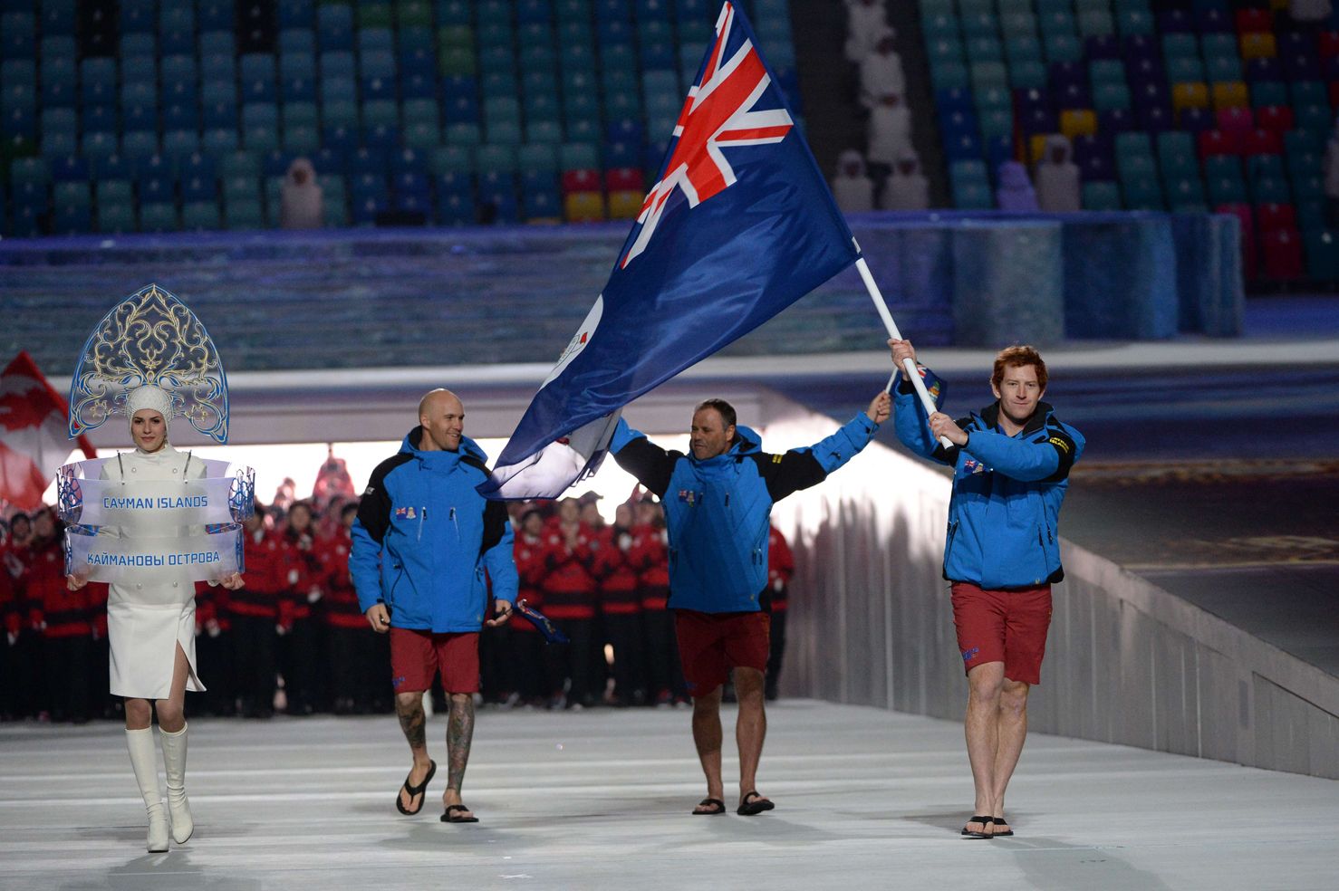 1.Если начать с прохода олимпийцев, то нельзя не отметить эффектное появление двух сборных: Бермуды и Каймановы острова. Почему? Смотрите сами: