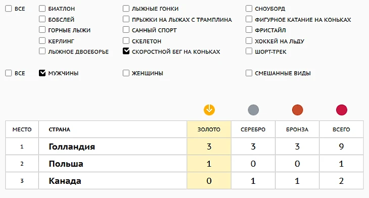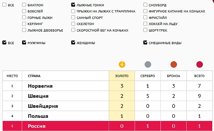 Вы, кстати, сами можете настроить медальный зачет по видам спорта тут.