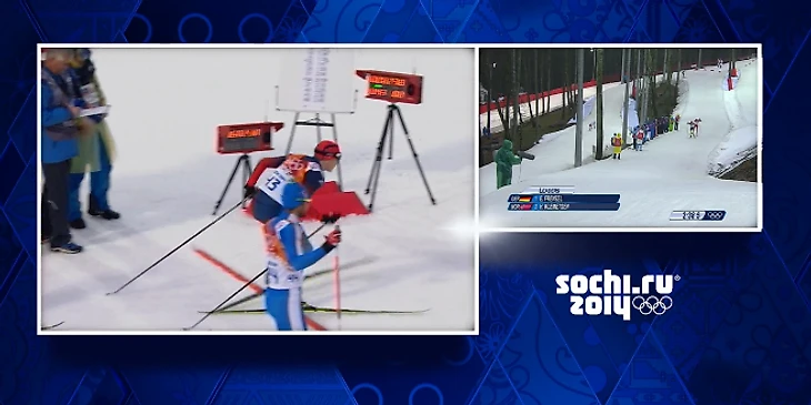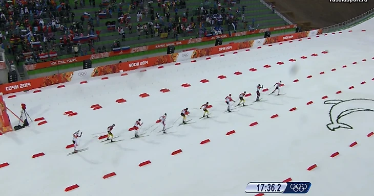 14.47 В таком мокром снегу отличать наших от норвежцев можно только по шапочкам. У нас они красные.