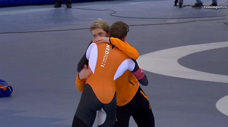 19.01 Голландцы сохраняют все шансы на очередной полноценный подиум: де Йонг лидирует, Йорит Бергсма стартует в следующем забеге, король конькобежного спорта Свен Крамер тоже еще не стартовал.