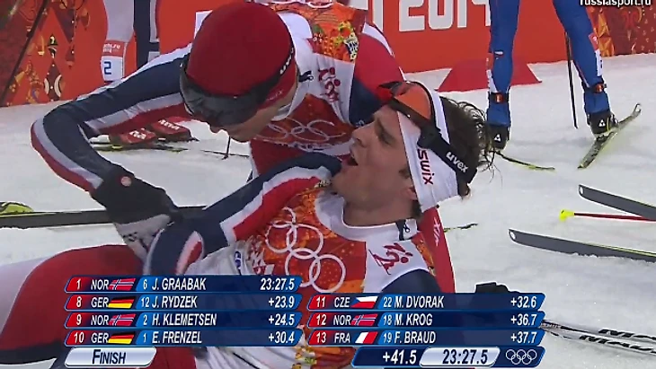 19.40 Трогательный момент: Бергсма и Крамер обнимаются и поздравляют друг друга.